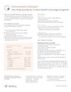 Updated March 2026 Georgia Pathways to Coverage (“Pathways” for short) is a Medicaid program for uninsured adults who are working or going to school at least part-time and have low incomes. Here is a fact sheet with details about Georgia Pathways eligibility and other information you need to know. Share Your Georgia Pathways Story If … Read More >